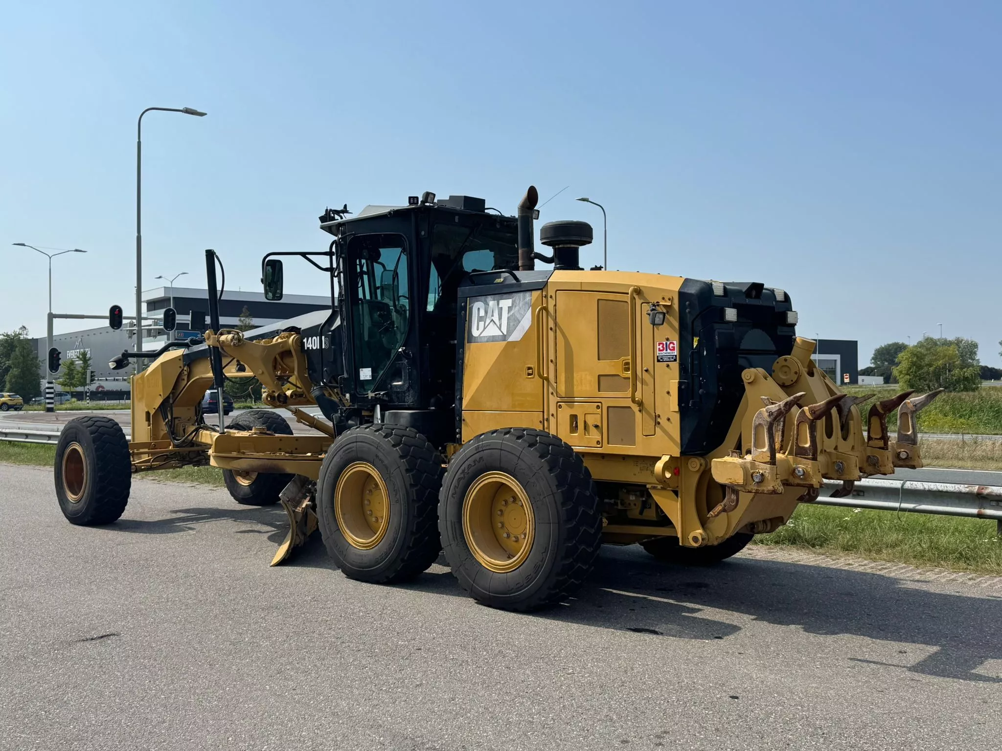 This Caterpillar 140M3 motor grader, built in 2015, is available for sale at BIG Machinery in the Netherlands.