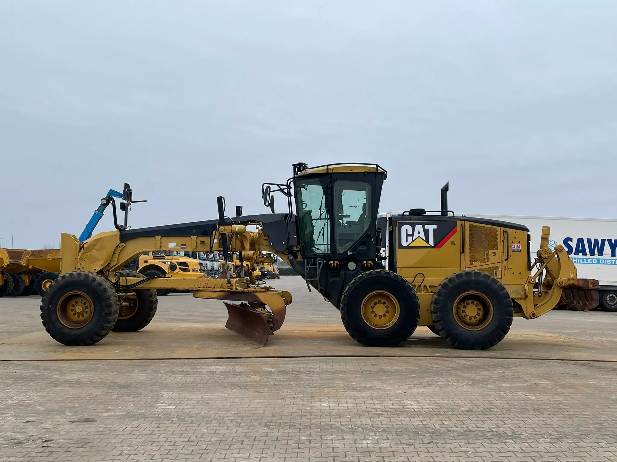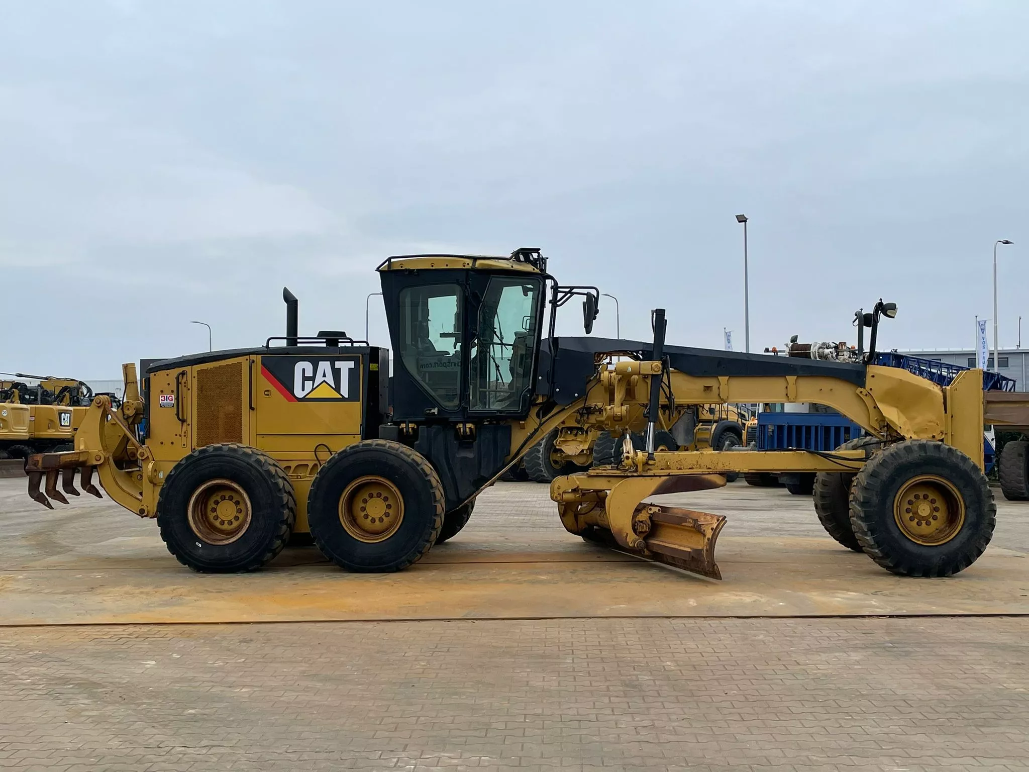 This Caterpillar 14M motor grader, built in 2013, is available for sale at BIG Machinery in the Netherlands.