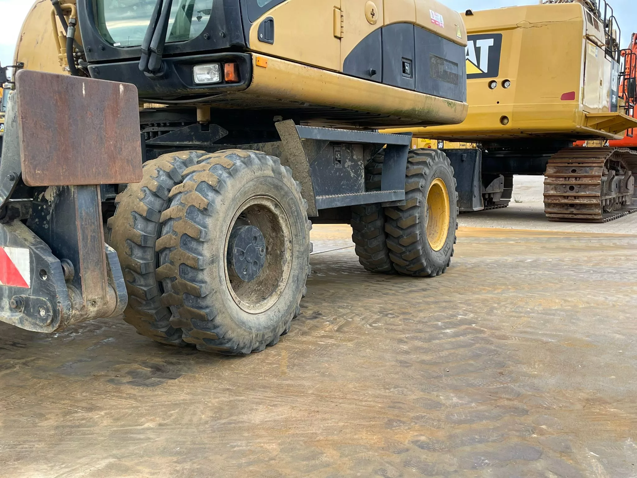 This Caterpillar M318C wheeled excavator, built in 2003, is equipped with a Caterpillar 3056 E-ATAAC diesel engine that delivers 113 kW (151 HP). The machine has 8,214 operating hours and remains in good working condition.