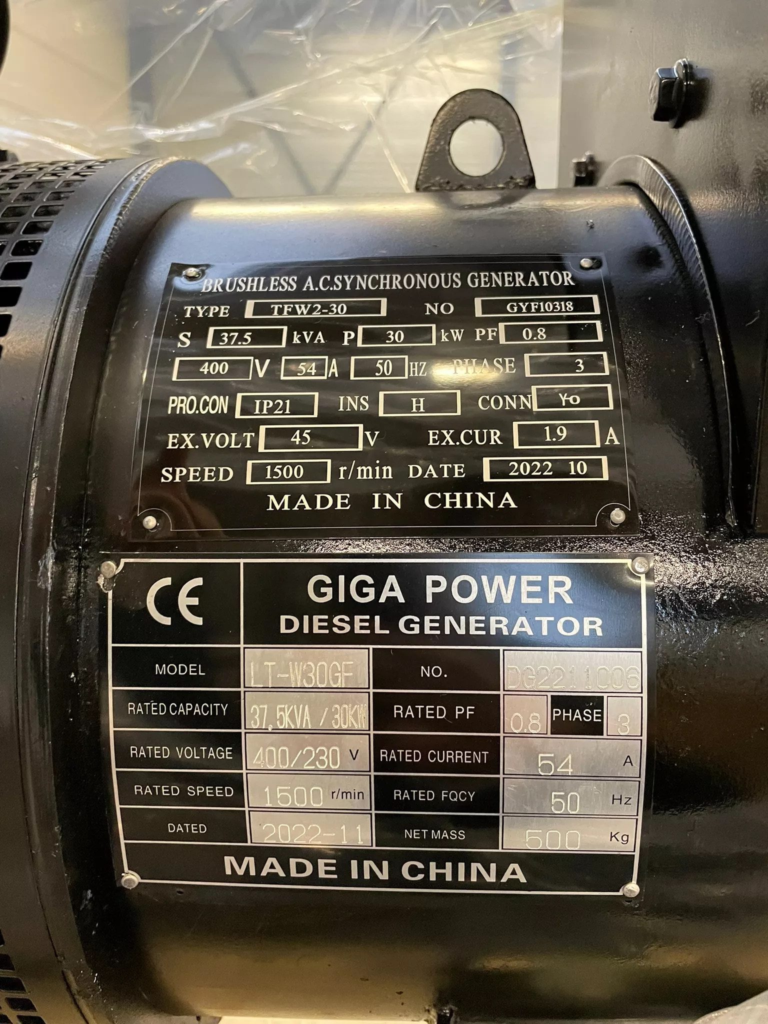 Giga power 37.5 KVA Open generator set – LT-W30GF