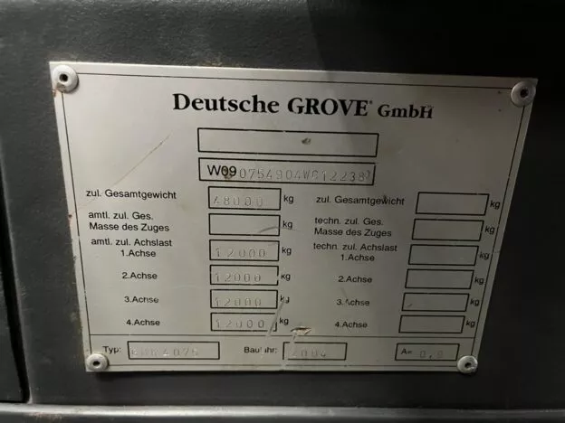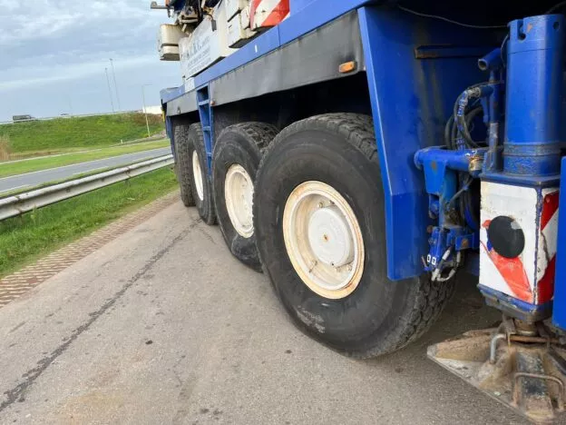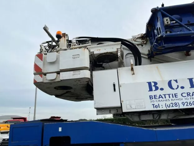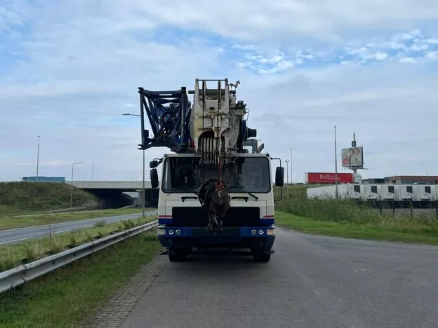 6,3t / 4,0t / 3,3t / 2,0t counterweight, 3 sheave hook block, Hydraulic outriggers, 2 hook blocks, 43,2m 5-section boom, 10-27m foldable fly jib, Double winch, Vogel central greasing, Mercedes-Benz OM501LA