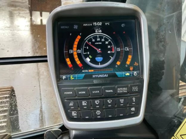 It is powered by a 267 kW engine and equipped with air conditioning and hydraulic hammer lines.