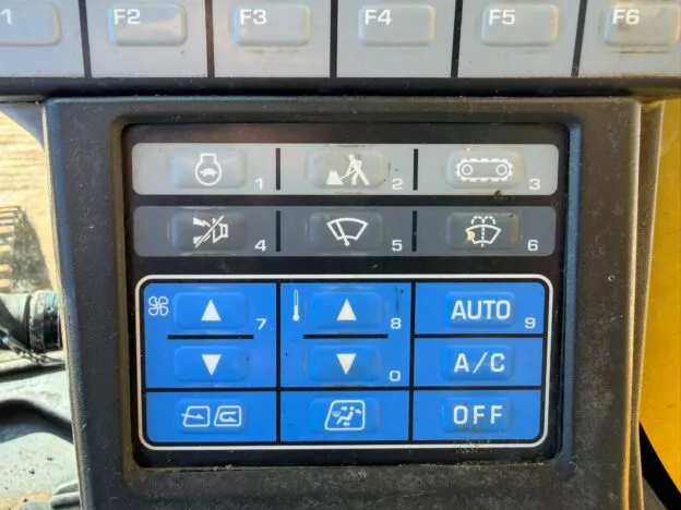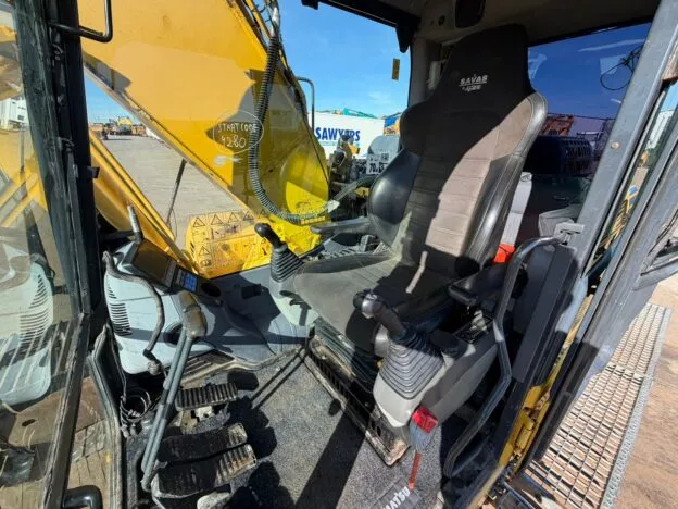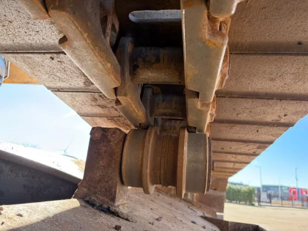The machine is equipped with 600 mm track shoes and undercarriage in approximately 80% condition. It features hammer lines and an air-conditioned cabin for efficient and comfortable operation on site.