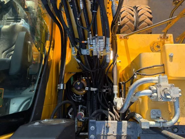 With tyres at approximately 60%, hammer lines, and an air-conditioned cab, this excavator is well suited for versatile construction and utility work, offering mobility, reliability, and operator comfort.