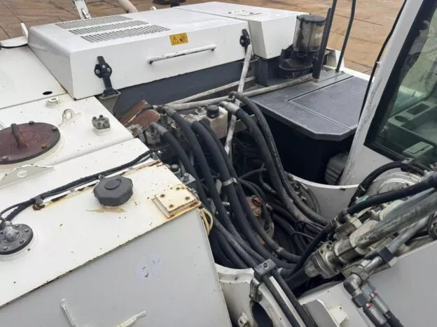 The machine is in good working condition and comes with check valves, air-conditioned cabin, and CE certification.
