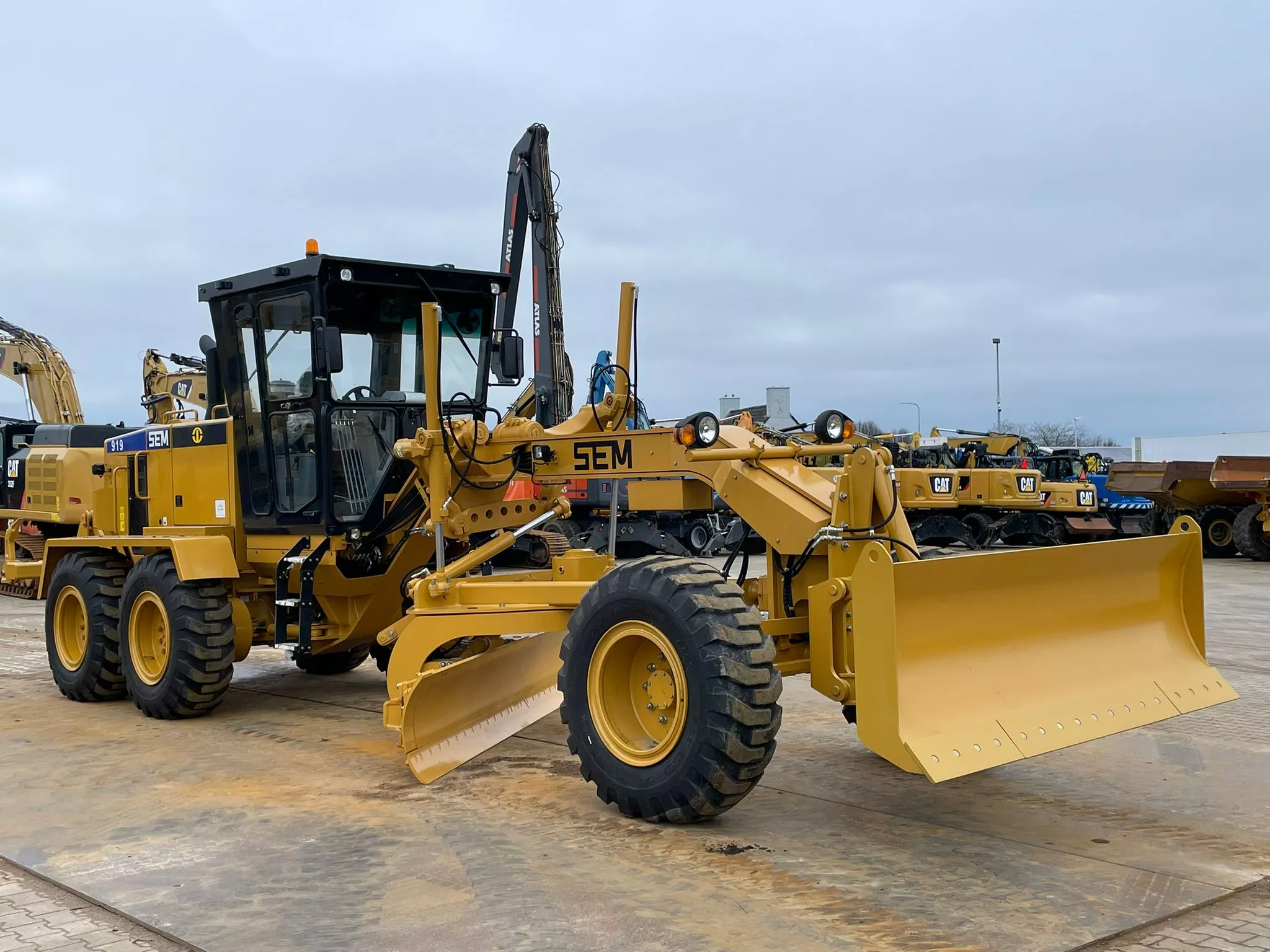 This SEM 919 motor grader, built in 2024, is available for sale at BIG Machinery in the Netherlands.