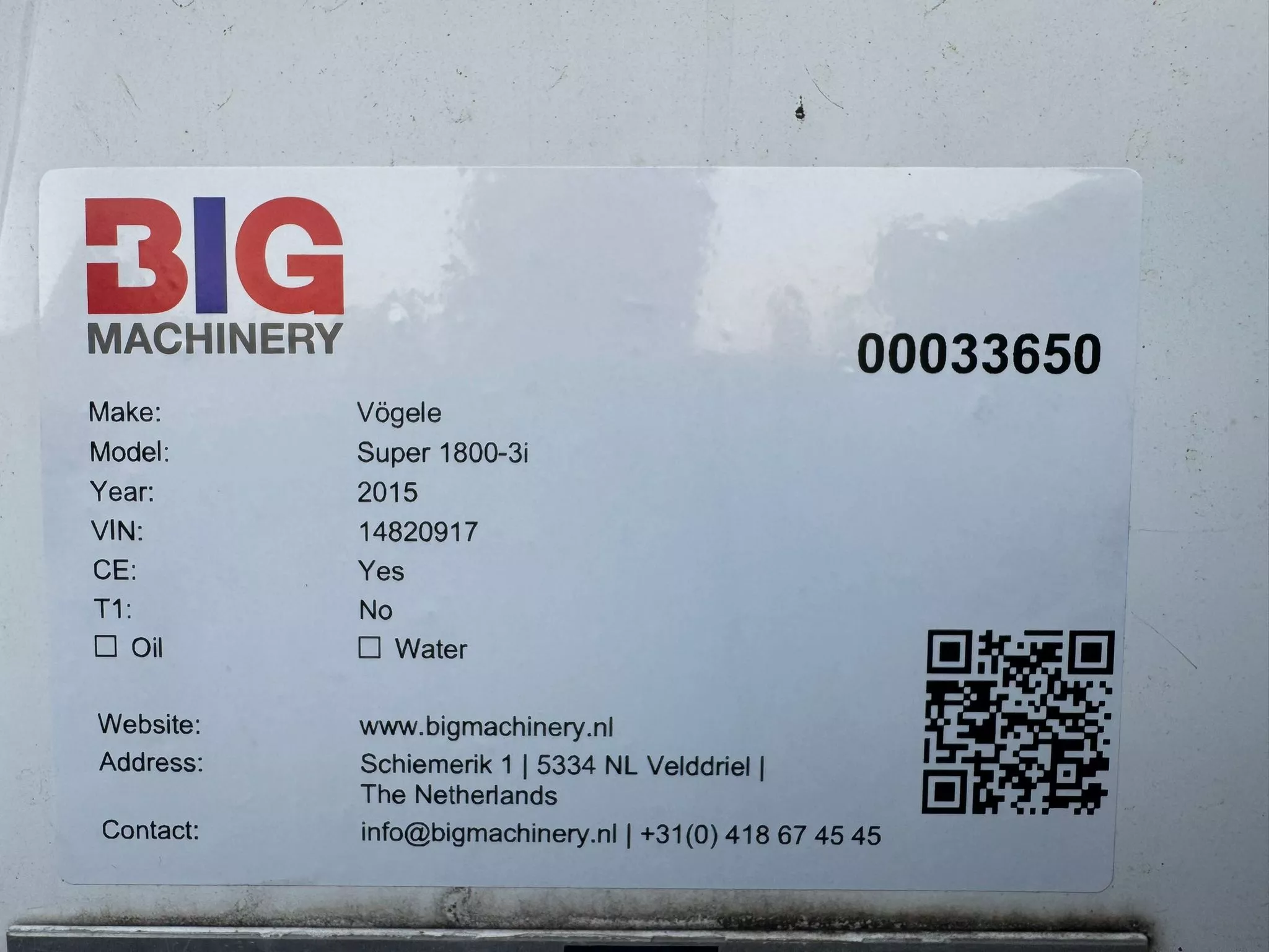 Contact BIG Machinery for more information, inspection details or a quotation. Worldwide shipping and full export documentation can be arranged directly from our headquarters in the Netherlands.