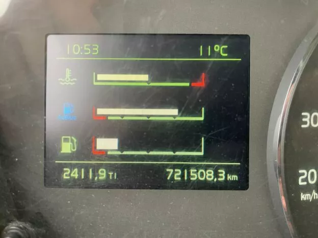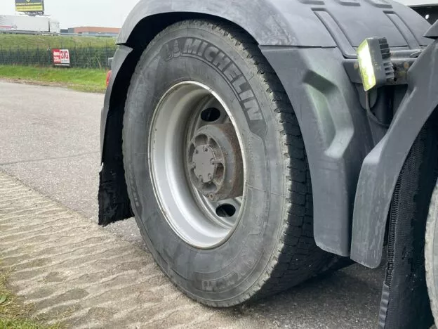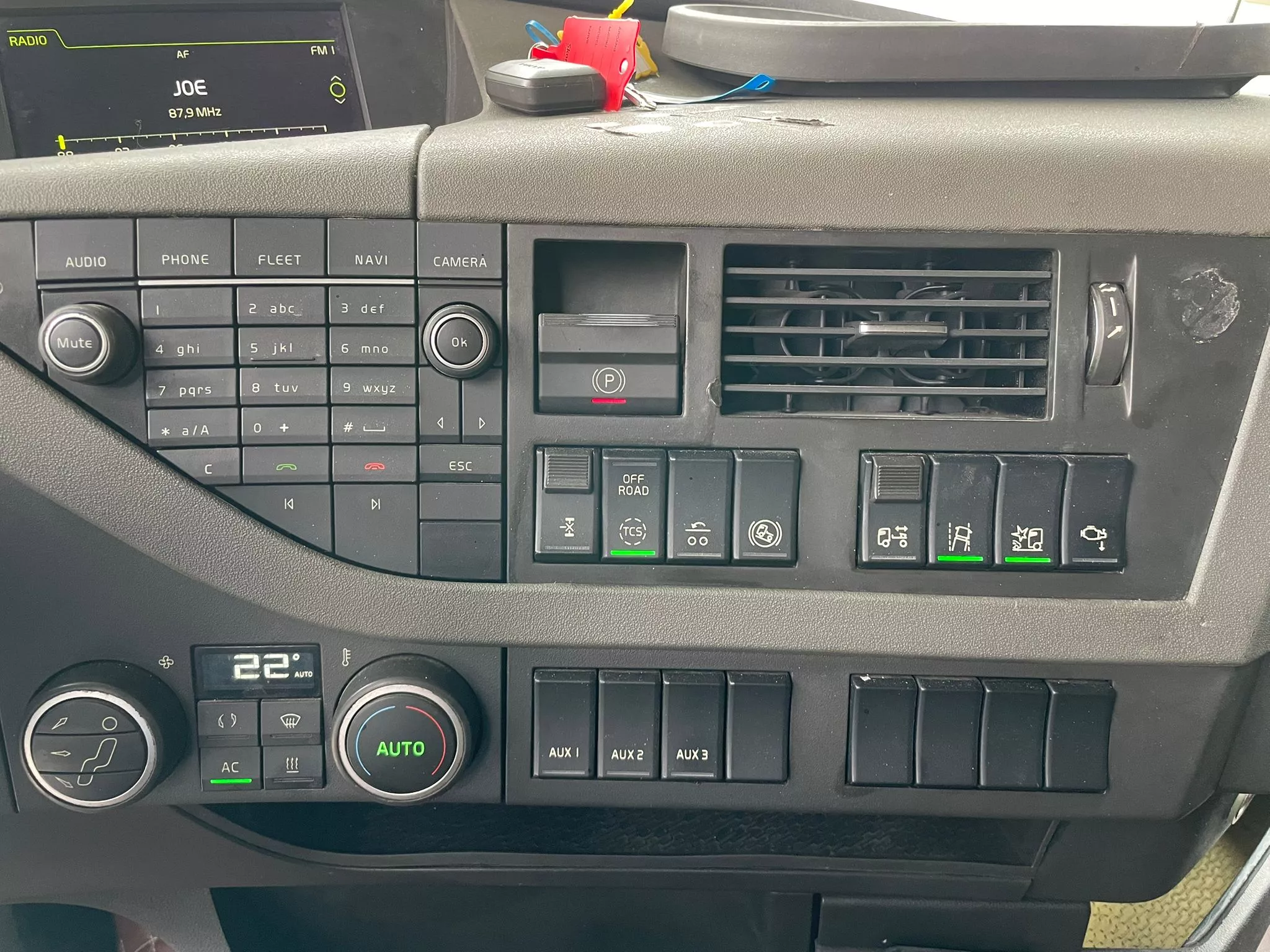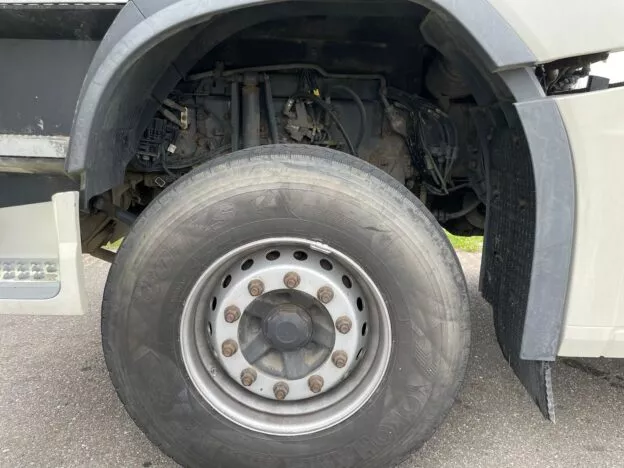 The truck is equipped with a 16-liter Volvo D16 engine (552 kW / 750 hp), delivering approximately 3550 Nm of torque. It comes with air suspension on front and rear axles, ESP, ABS, and PTO.